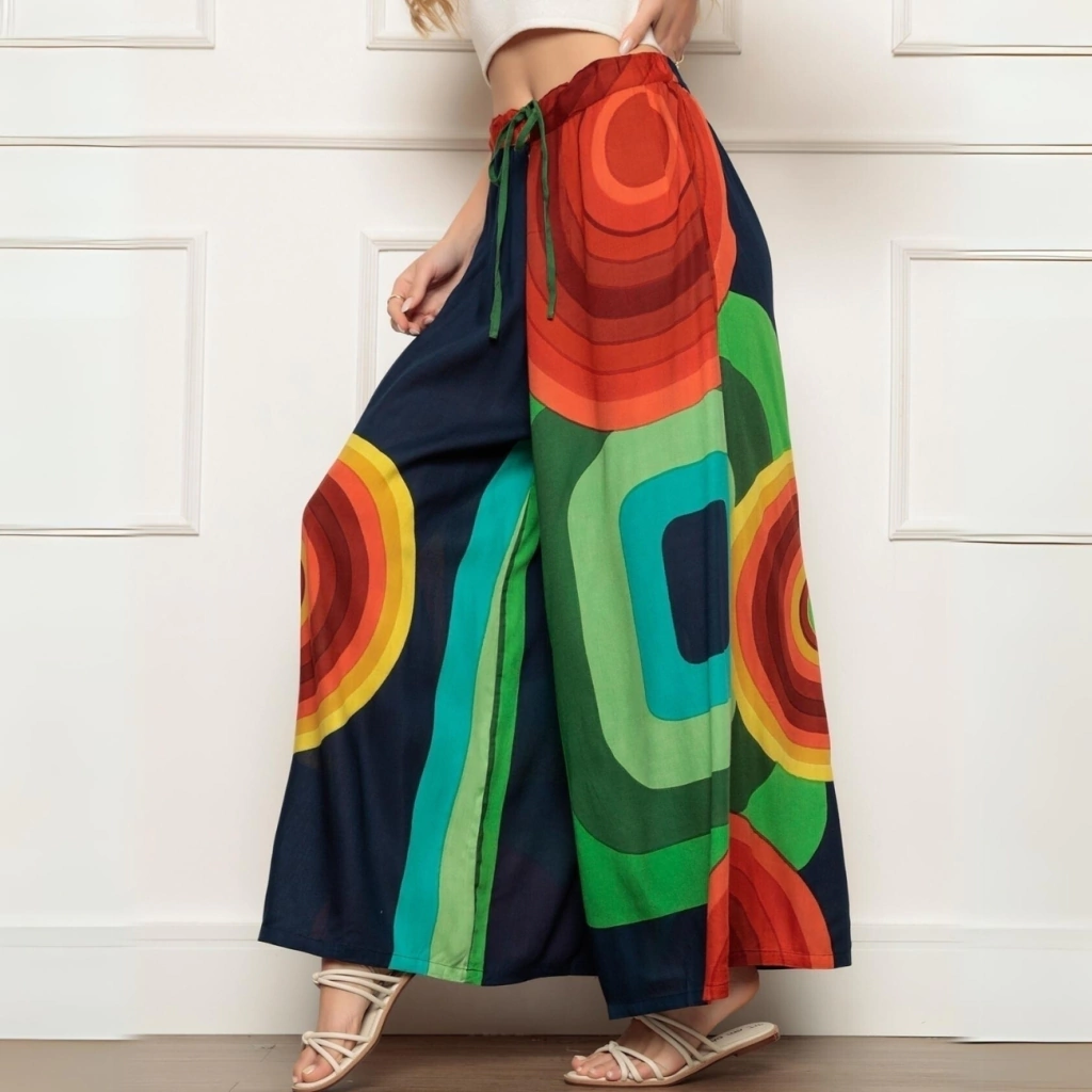 Seja o centro das atenções onde quer que você vá, irradiando confiança e elegante com nossa Calça Indiana Feminina Pantalona Estampada.